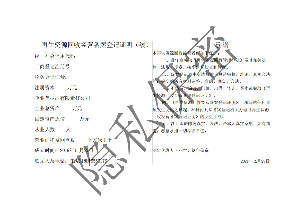 商委再生资源回收经营备案登记证明